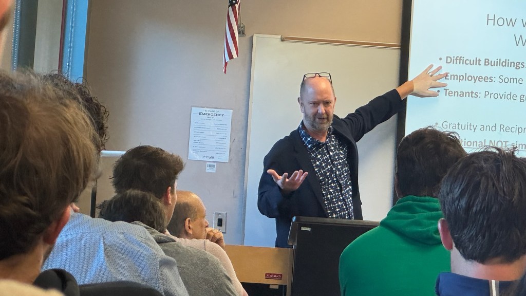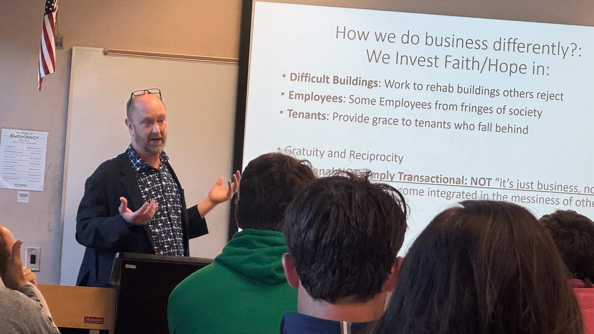 Andy Gustafson got to go visit 5 classes in the business school at Ave Maria University in South Florida near Naples mid-February. It was a great opportunity to get to share about the Economy of Communion vision of business, and how business need not be a soul-sucking endeavor, as well as sharing about the Economy of Communion Project (funded by the John Templeton Foundation). Ave Maria is an amazing place. It was just open fields just over 20 years ago, and now there is a whole campus and sizable town with a gorgeous church in its center.