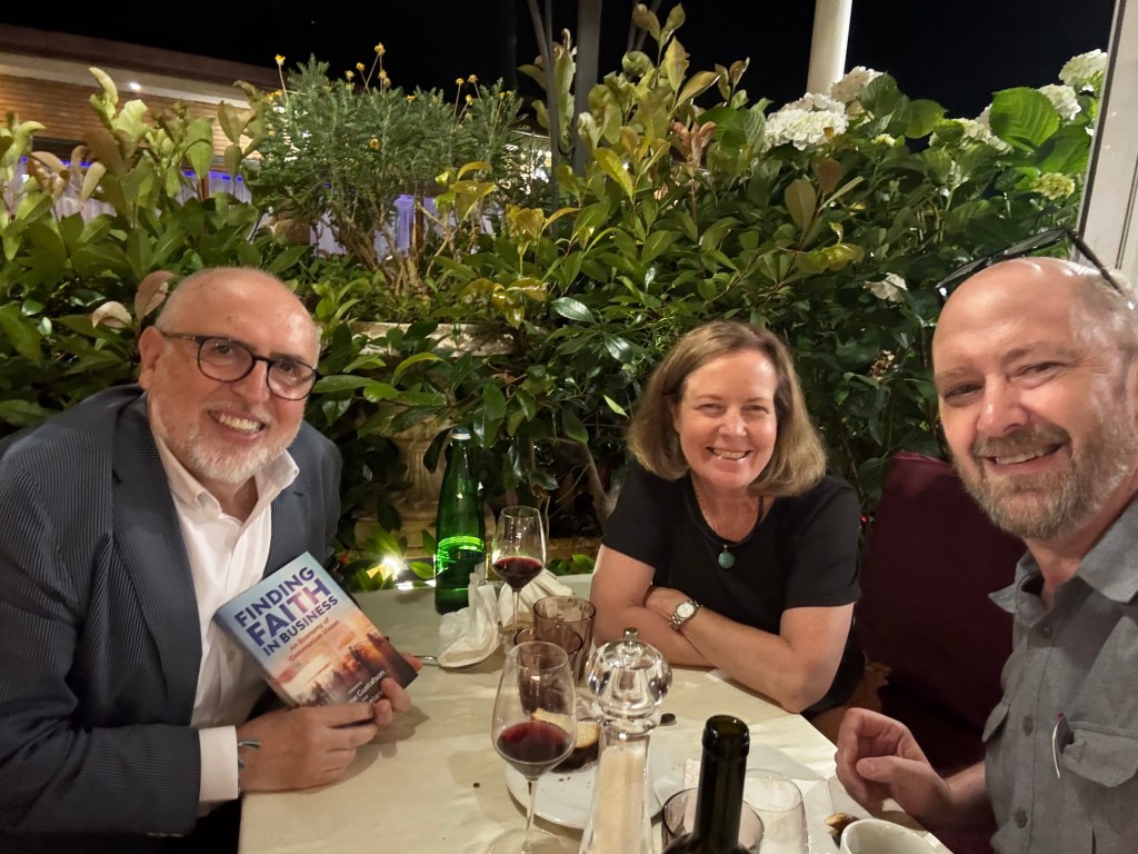 I also got to travel to Castle Gondolfo, just south of Rome, and Roca di Papa, the worldwide central headquarters of the Focolare movement, a Catholic-inspired organization who founded the Economy of Communion movement in 1991. While at Roca di Papa, I was able to meet with Margaret Karram the president of the Focolare, as well as Ruperto Battison and Genevieve Sanze who oversee the Focolare work and sharing operations worldwide. We also had supper with Jesus Moran, the president of the Economy of Communion movement. None of this would have been possible without the help and support of Loretta Raushuber, who lived in Italy for 17 years and knows everyone it seems.